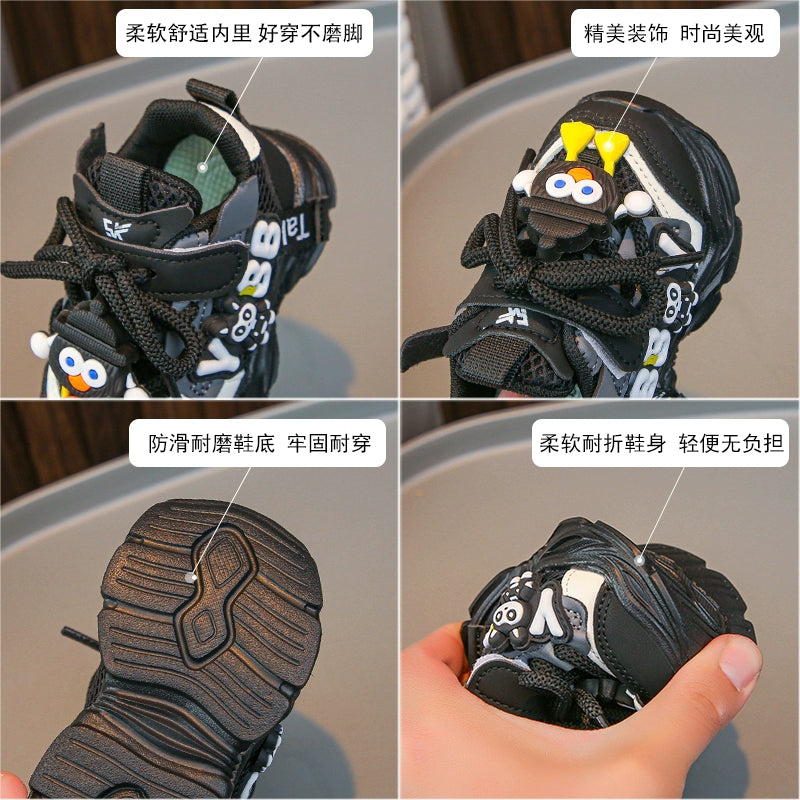 Kids Cute Design Soft Sole Sneakers with Detachable Toy - 680 Engineered for active children, these soft sole sneakers combine comfort with playful design. The cushioned sole provides support during daily activities while remaining lightweight for extended wear. The detachable toy adds an interactive element that keeps young ones engaged. Crafted with durable materials, these sneakers withstand the demands of childhood play. The cute aesthetic appeals to kids while meeting practical footwear standards. Ideal for casual outings, school, and recreational activities.