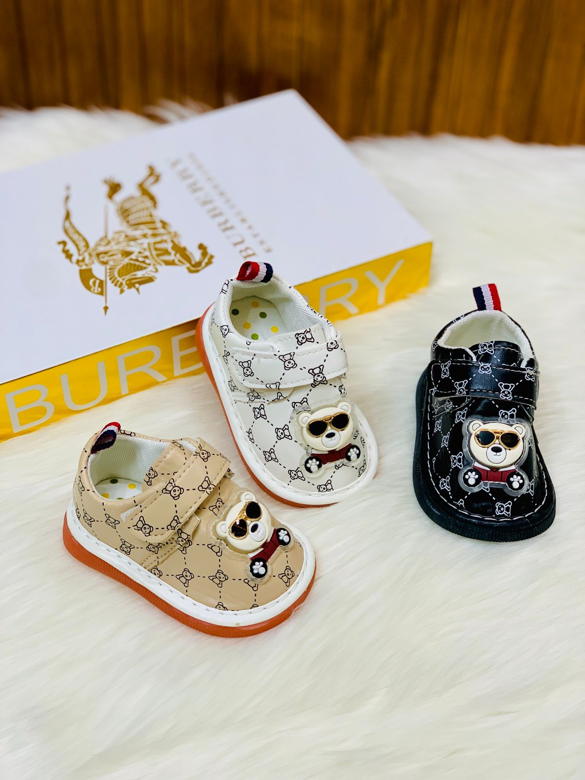 Infant's Cute Design Bear Printed Soft Shoes offer gentle comfort and warmth for delicate feet. Crafted with soft materials, these shoes provide a snug fit that supports natural foot movement. The charming bear print adds a playful touch, making them ideal for everyday wear or special occasions. Designed to protect tiny toes while allowing breathability, these shoes combine practicality with adorable style for your infant’s early steps.